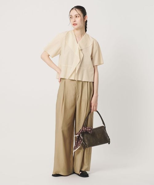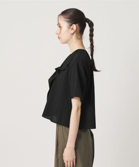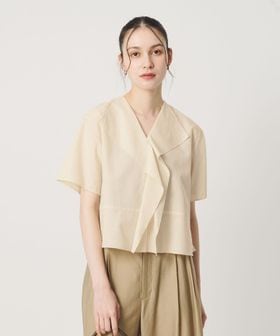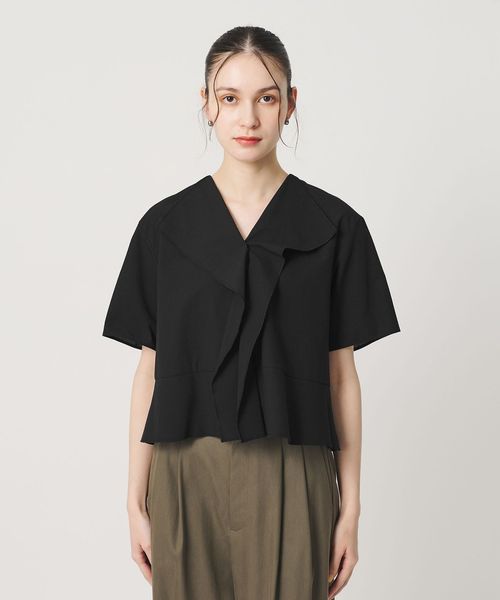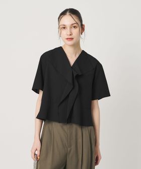 大きく波打つラッフルが軽やかなムードのシャツブラウス