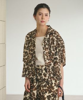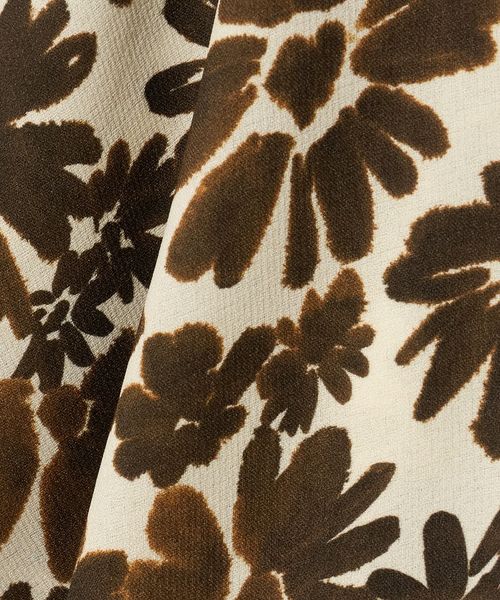 スタイリッシュな雰囲気漂う水彩タッチのフラワープリントに、ドレープを活かしたドルマンスリーブでニュアンスのあるシルエットが特徴。