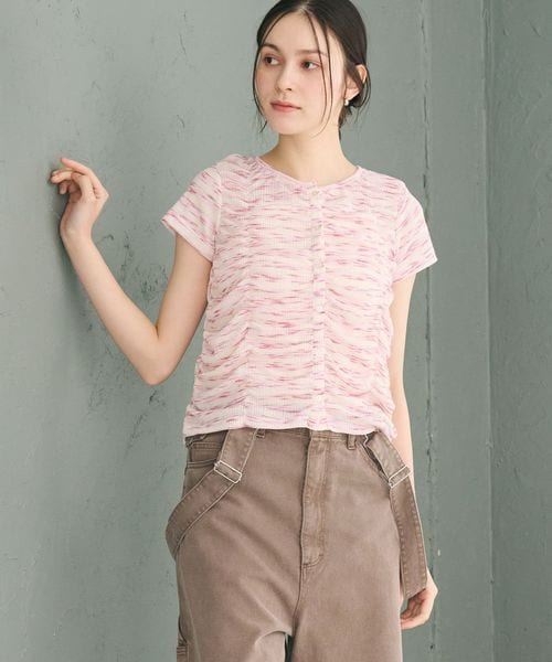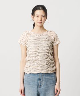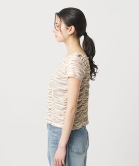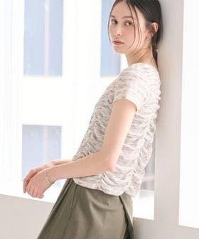 軽やかな素材にたっぷりとほどこしたシャーリングが立体感を生むトップス。