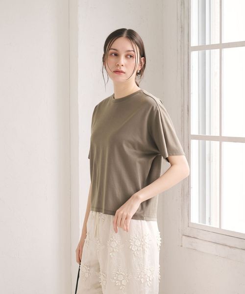 肩まわりに自然なゆとりを持たせたドルマンスリーブTシャツ。
