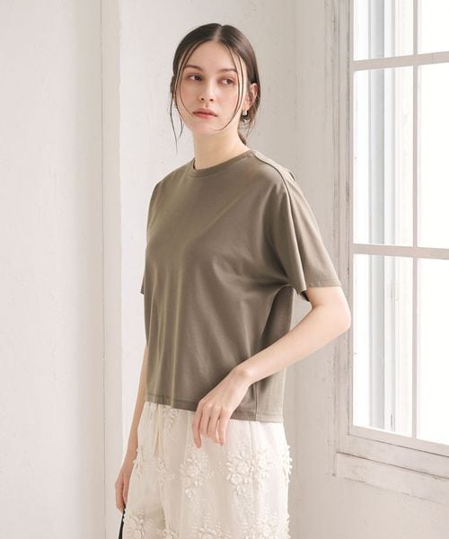 肩まわりに自然なゆとりを持たせたドルマンスリーブTシャツ。