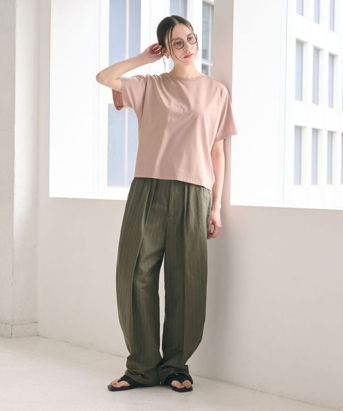 セルロース特有の上品な光沢とほどよい落ち感が、カットソーでありながらきちんと感のある印象に仕上げました。