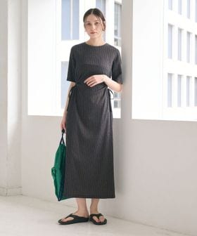 サイドホールギャザーを施したショートスリーブワンピース。