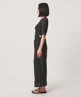 経編で作られた布帛ライクなジャージー素材を使用した、凹凸のある表情のシボ感が特徴。