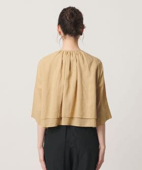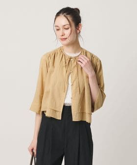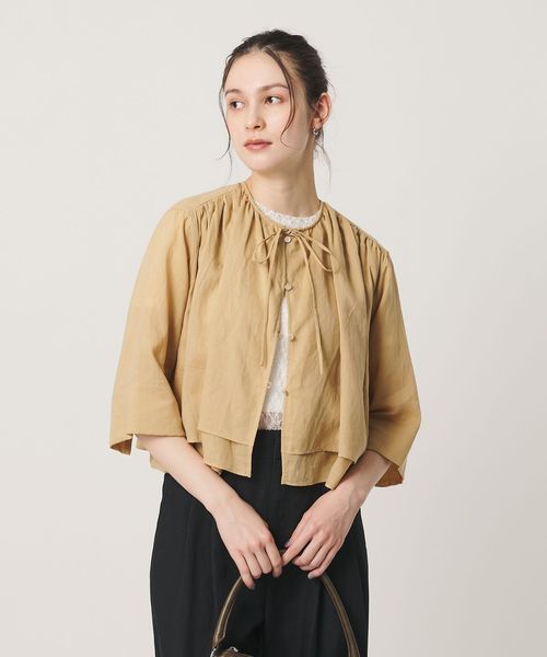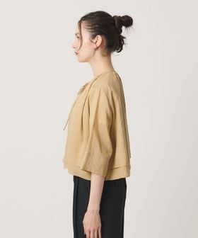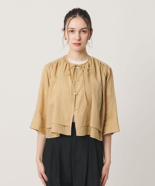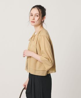 麻ブレンド フロントリボン ティアード シャツ ウォッシャブル