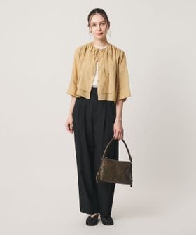 ドライな質感のシャツはとろみやツヤのあるボトムとの相性が良く、きれいめなワイドパンツと合わせていただくのが◎。
