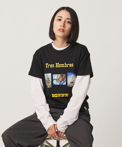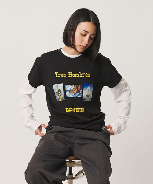 <BONNE>TRES HOMBRES プリントTシャツ