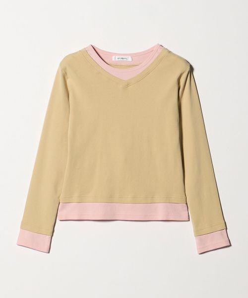 重ね着風デザインが特徴的なロングスリーブTシャツ。