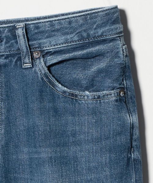 ※こちらの製品はインディゴ染料を使用しております。着用により、他の衣類や淡色のベルト、バッグ、靴、ソファやシート等に色が付着することがありますのでご注意ください。洗濯の際は、色落ちしますので、単品洗いをしてください。また洗濯により徐々に色あせします。