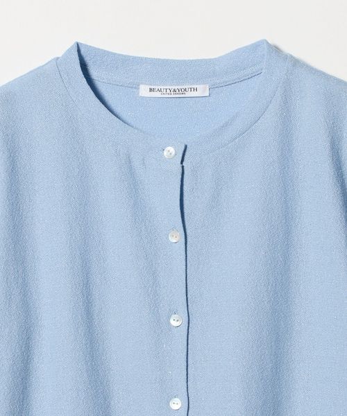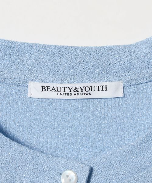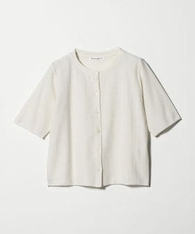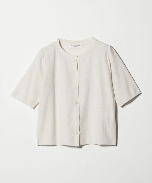 動きに合わせて細やかにきらめくラメ糸が、上品な表情を生む半袖カーディガン。
