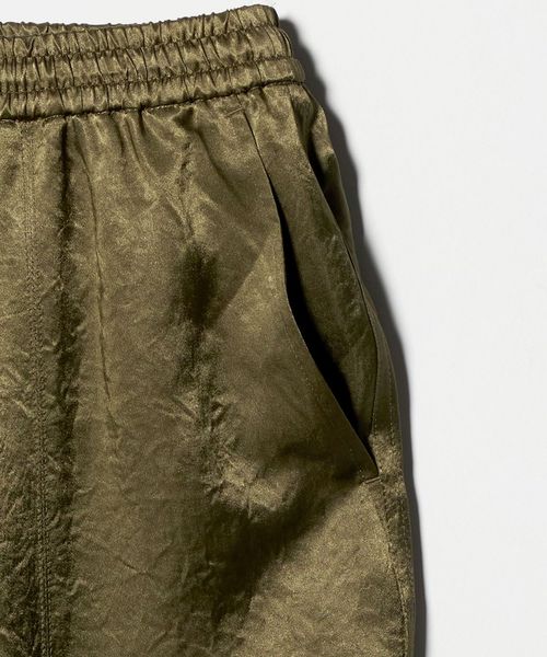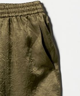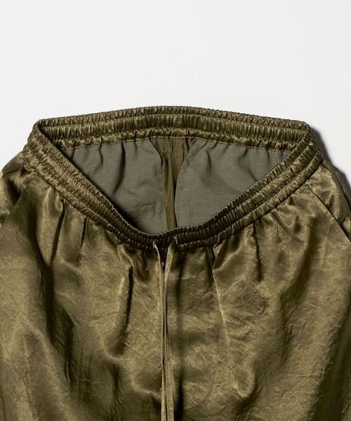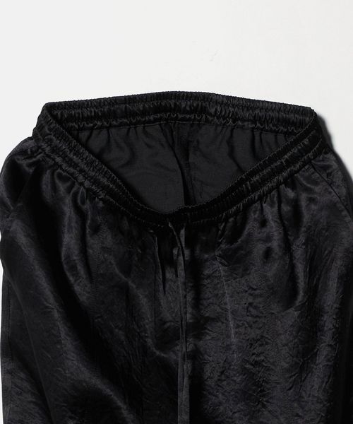 光沢感のあるサテン生地でお作りしたイージーパンツ。