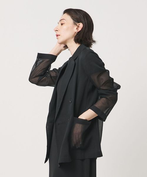 やわらかな透け具合と抜け感が魅力のシアージャケット