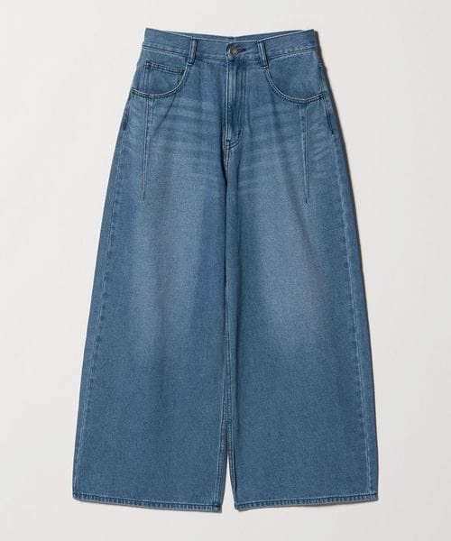 腰や裾にダーツを入れた、立体的なシルエットのワイドデニムパンツ。