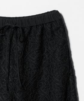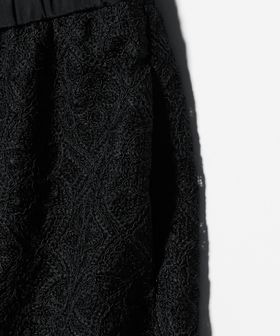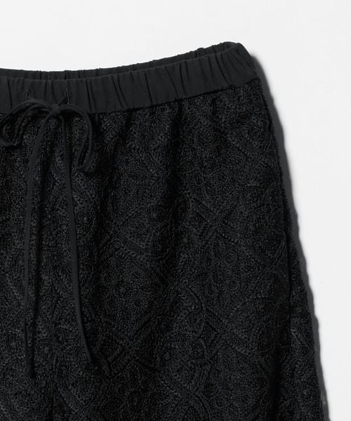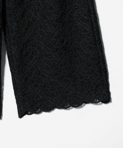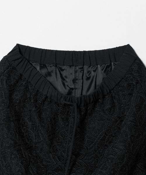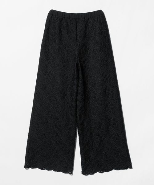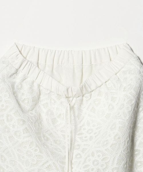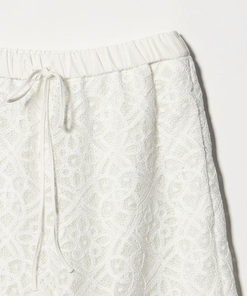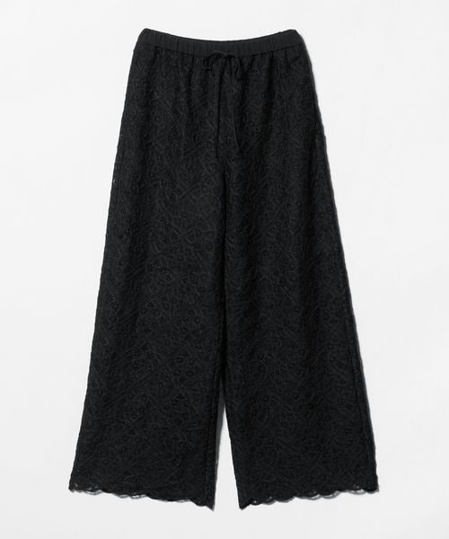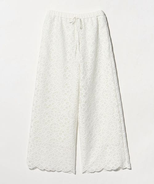 コードレースが華やかなムードのワイドパンツ。