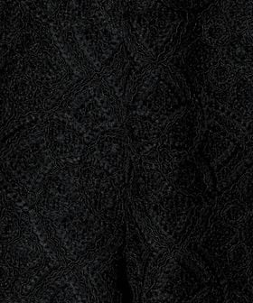 マットな糸や光沢のあるコード糸を使用した、ポリエステルのレース生地。