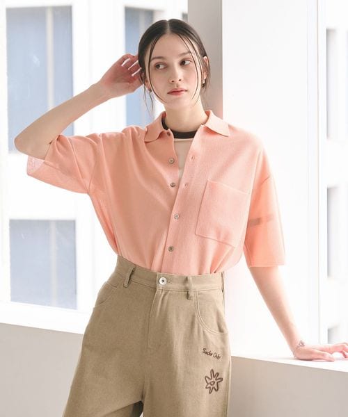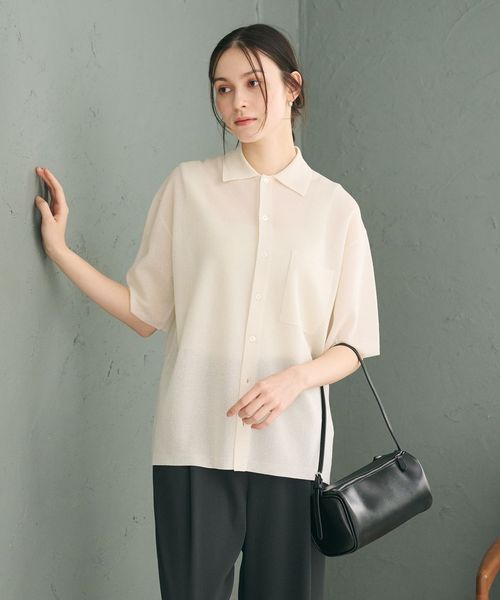 涼しげな透け感のシャツ型カーディガンに半袖が登場