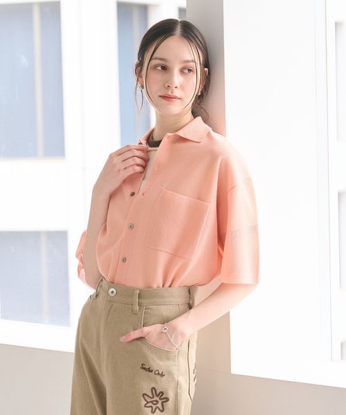 ミラノリブ ショートスリーブ シャツカーディガン ウォッシャブル