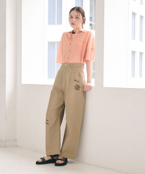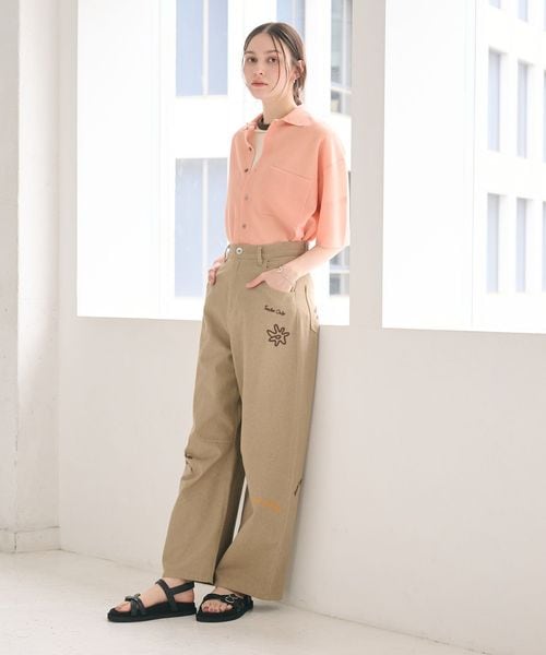 ボリュームのあるボトムとの装いは、タイトなインナーを合わせたりボタンを留めてタックインするのもおすすめです。