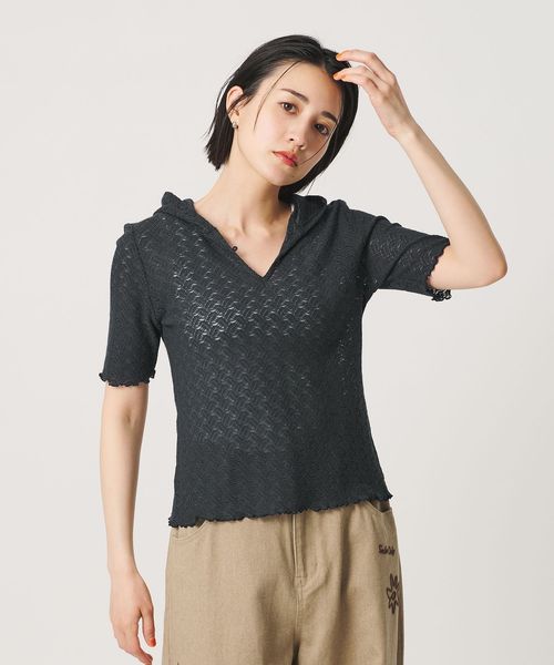 レース ショートスリーブ フーディ