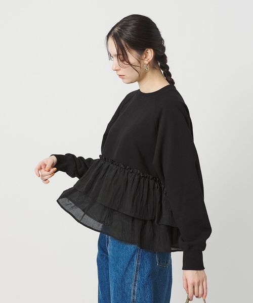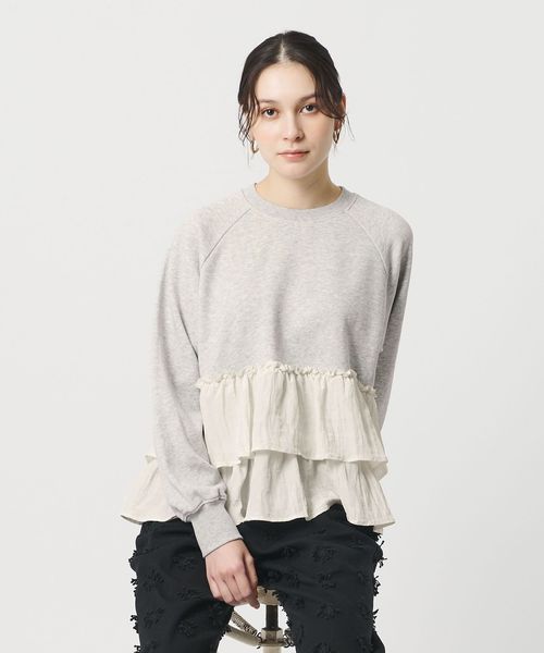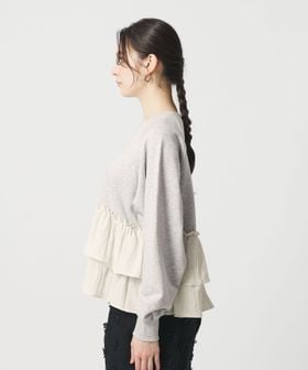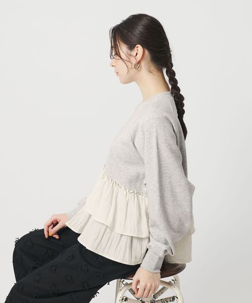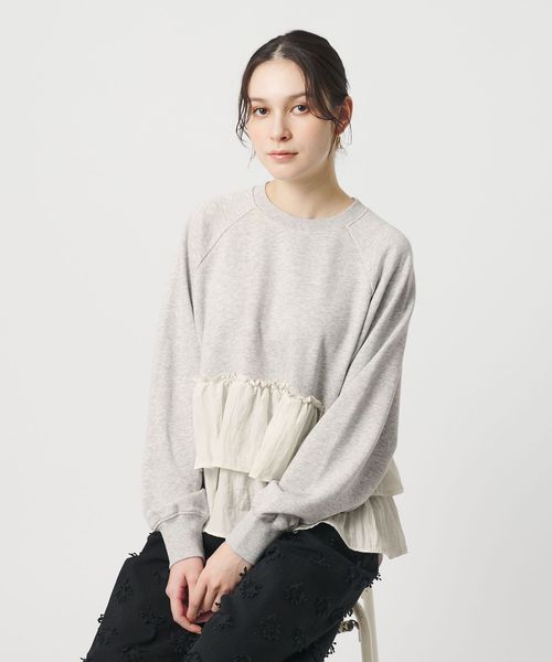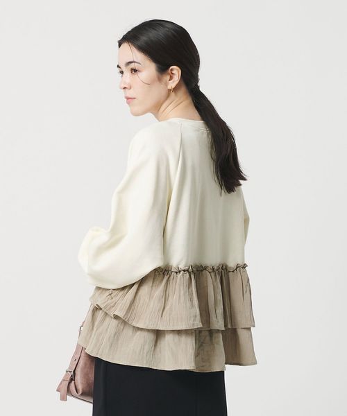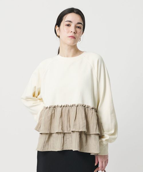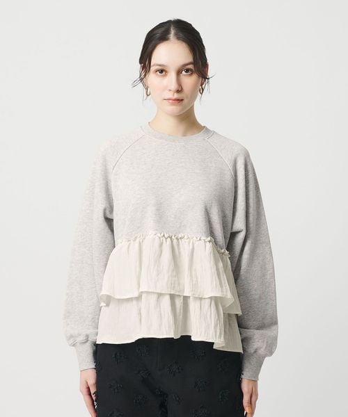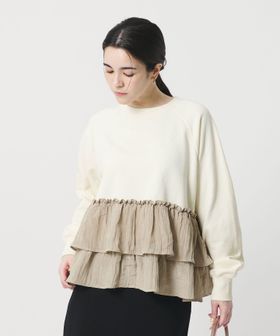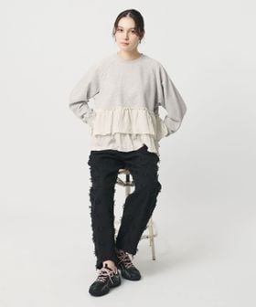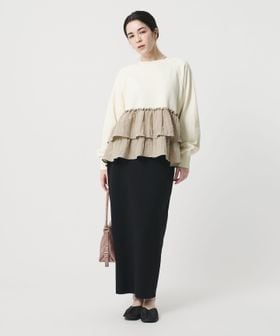 異素材ギャザーで魅せる、大人のティアードスウェット