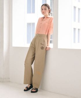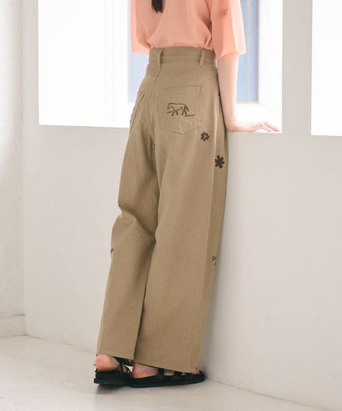 遊び心のあるオリジナル刺繍が目を引くパンツ。