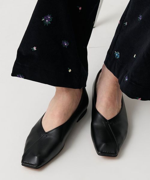 Vカットステッチ フラットシューズ