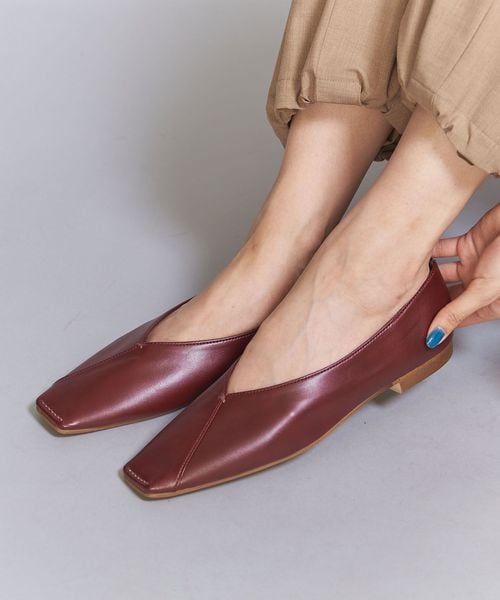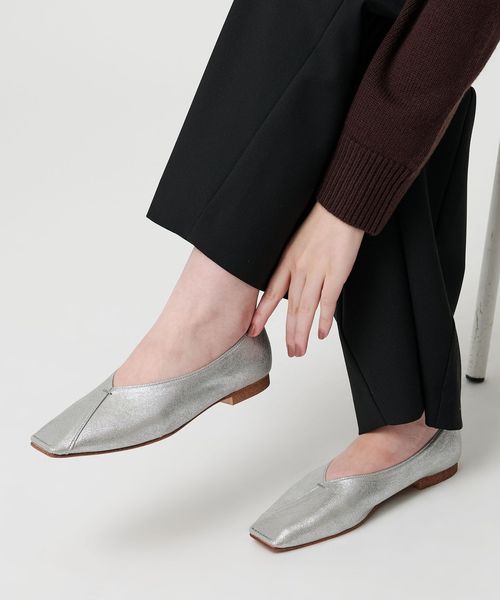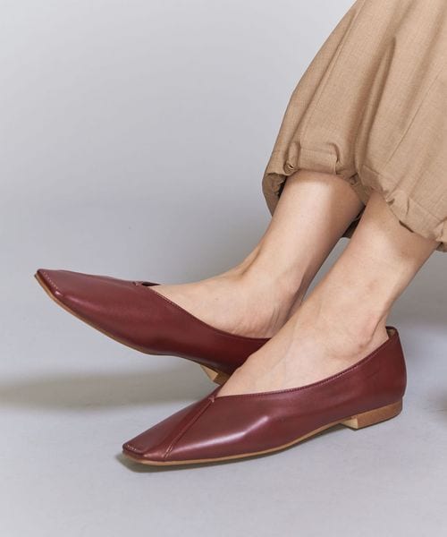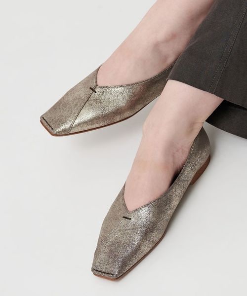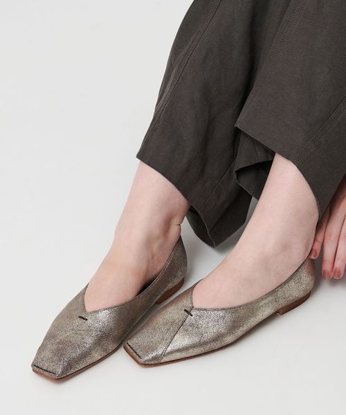 Vカットステッチ フラットシューズ