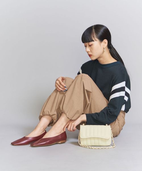 人工皮革では表現するのが難しい、つま先に施されたボディと同色のステッチデザインが、シンプルな上品さを保ちながらも今年らしさを覗かせるアクセント。