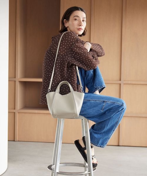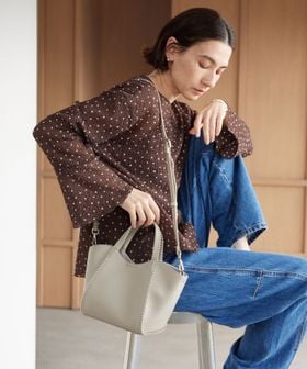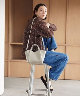 さりげなく波型に仕上げた間口は、持ち手に腕を通しやすく、柔らかで女性らしい印象をプラス。