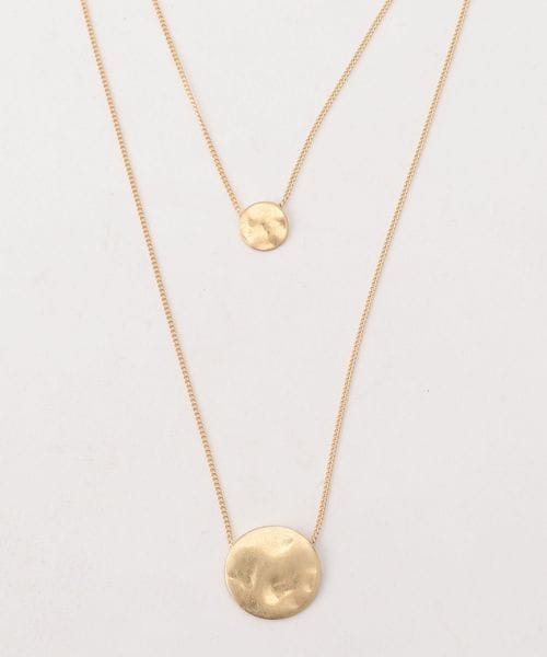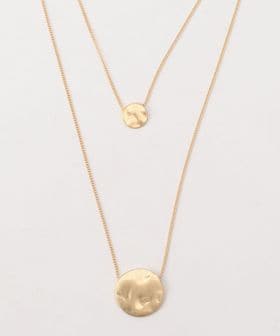 メタリックなサークルモチーフを叩き加工により凹凸のある豊かな表情に仕上げたネックレス。