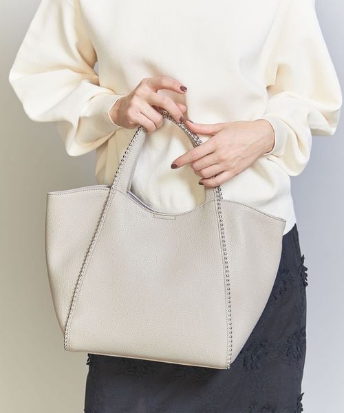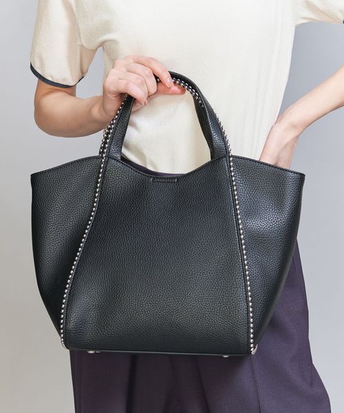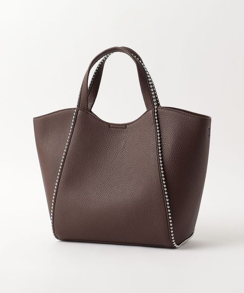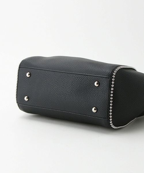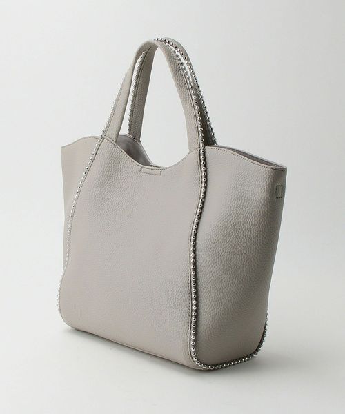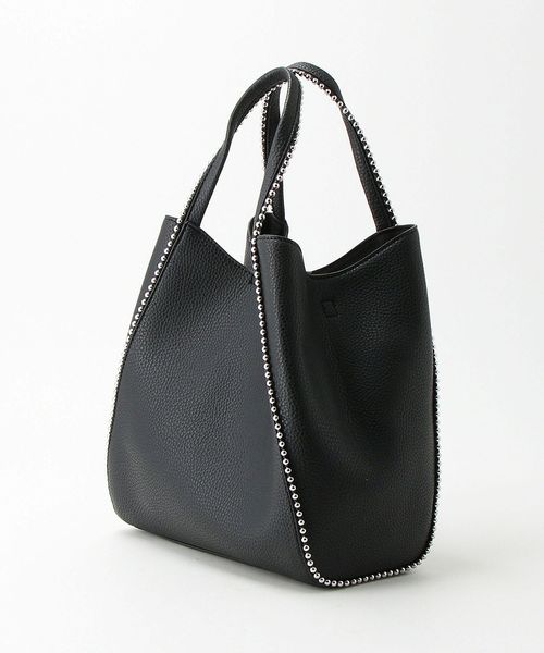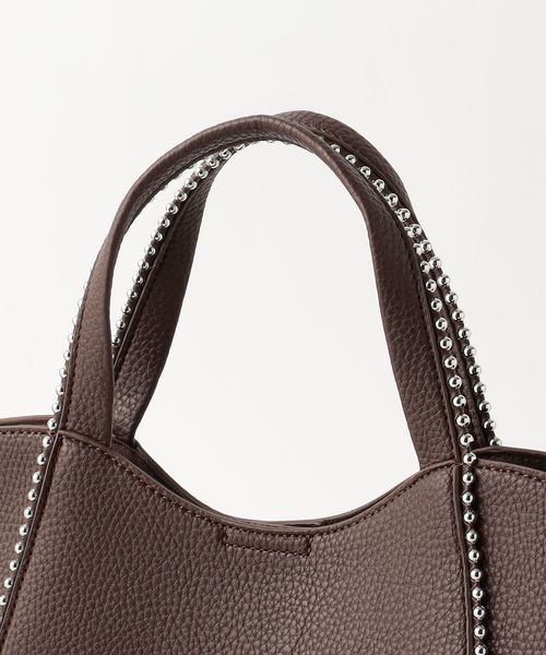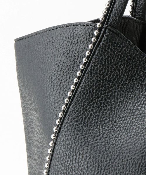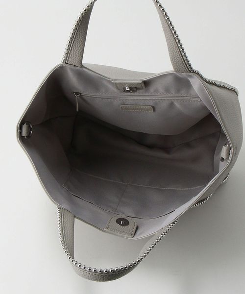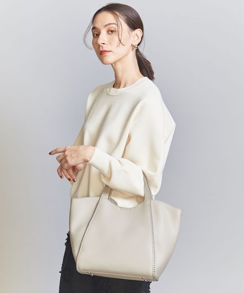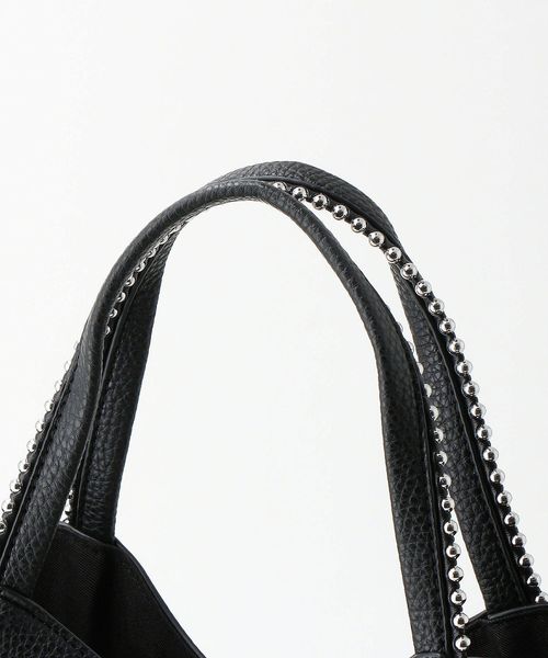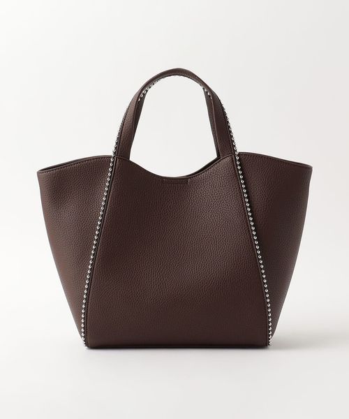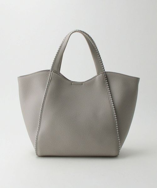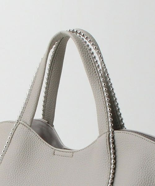 ハンドルから本体部分にかけて、ボールチェーンのアクセントをあしらったトートバッグ。