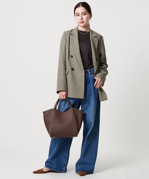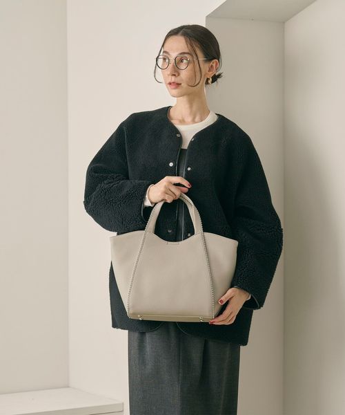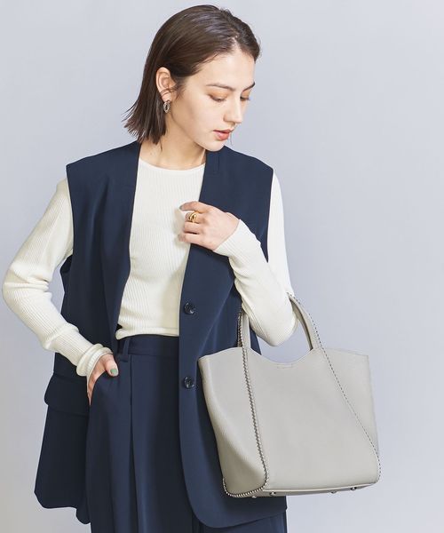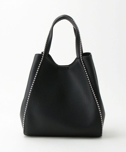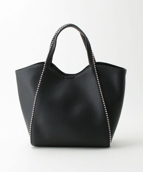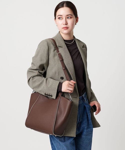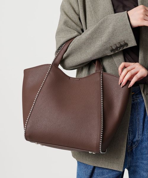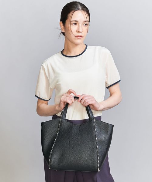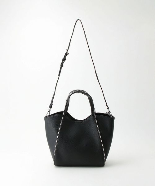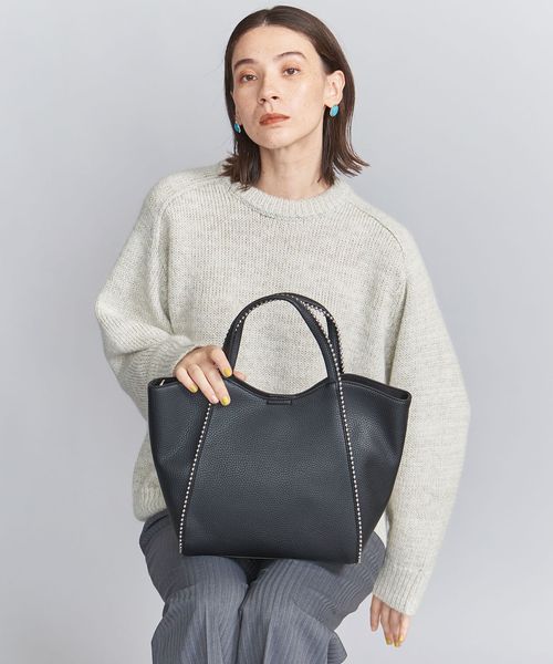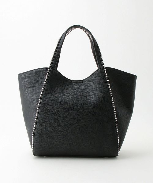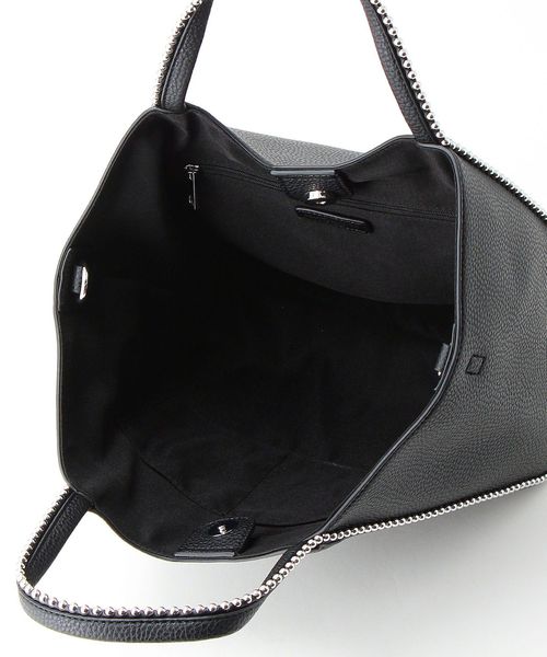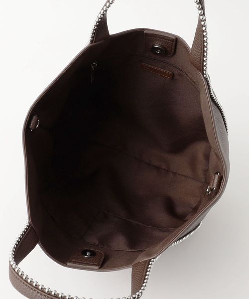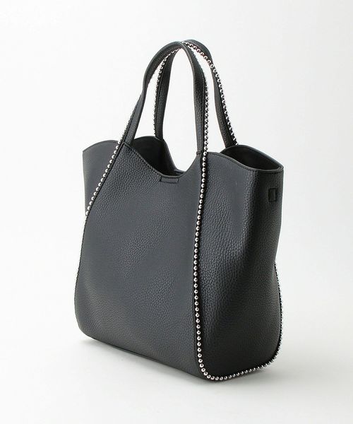 ハンドルから本体部分にかけて、ボールチェーンのアクセントをあしらったトートバッグ。
