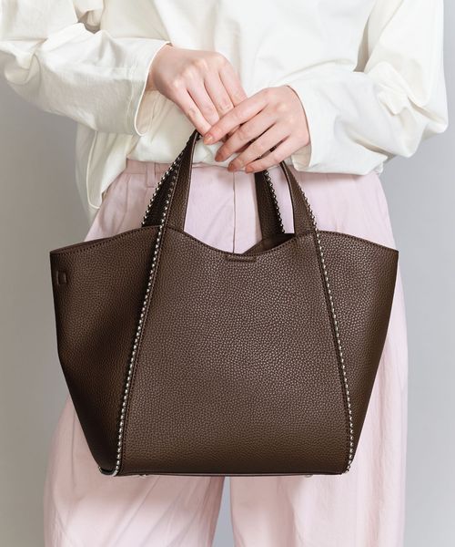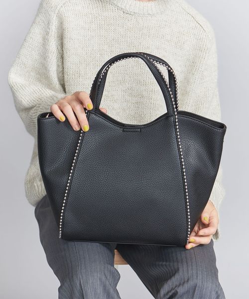 ハンドルから本体部分にかけて、ボールチェーンのアクセントをあしらったトートバッグ。