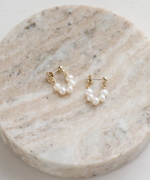 小粒の淡水パールを並べた愛らしいデザインのピアス。