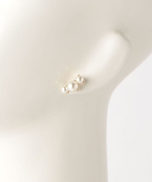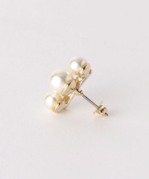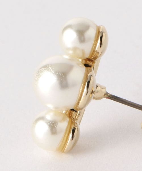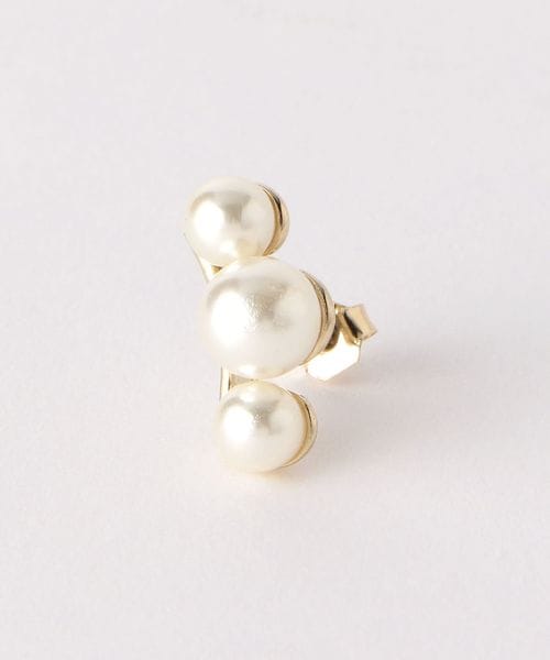 緩やかなカーブを描くメタル素材に3つのパールモチーフを並べ、女性らしい雰囲気に仕上げたデザイン。