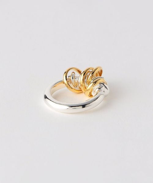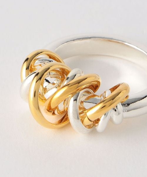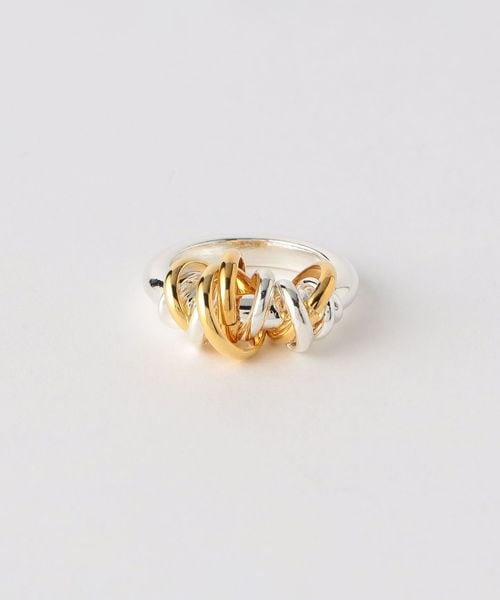 コイルを巻きつけたような、印象的なフォルムのリング。