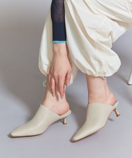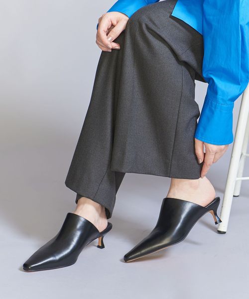 トレンドのポインテッドトゥを採用したミュールパンプス.