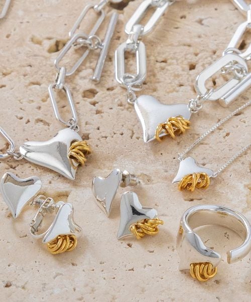 ハートモチーフにコイルを巻きつけたようなデザインが存在感溢れるネックレス。