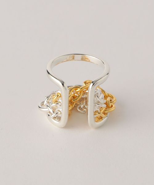 3種類のチェーンが絡み合ってみえるリング。