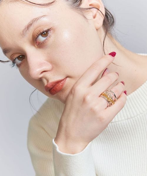 揺れる3連チェーンが手元を華やかに彩る<LAPUIS>のリング