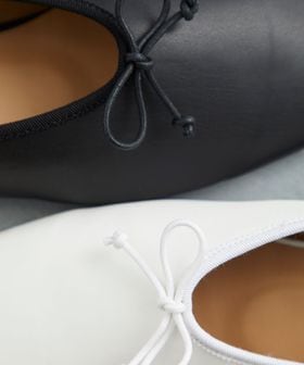 コーディネートに女性らしいアクセントを添える大人のバレエシューズ