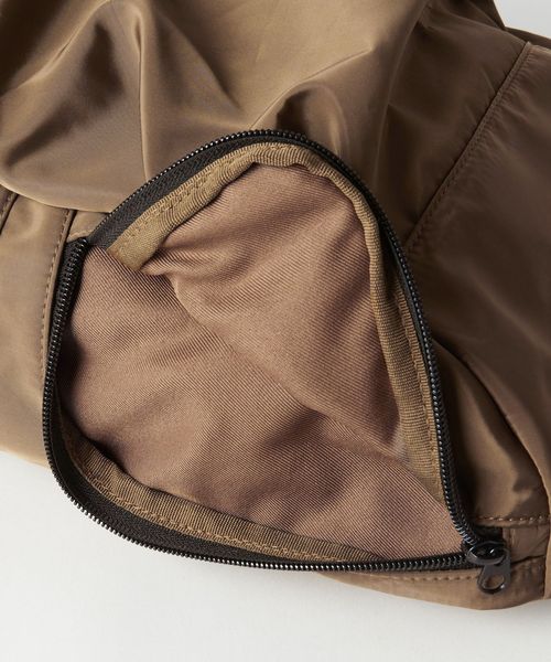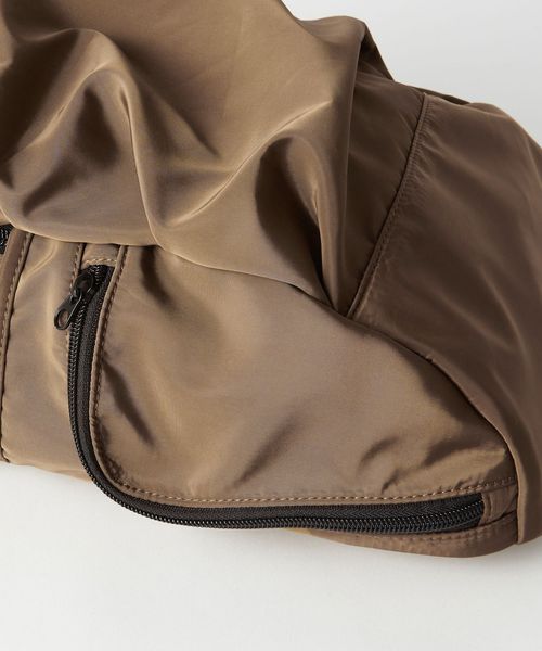 スマートフォンの収納に最適なサイドポケット、ポイントとなるフロントのドロスト仕様など、多種多様なポケットを付けた遊び心のあるデザインも魅力。