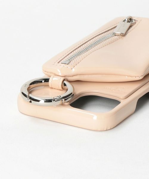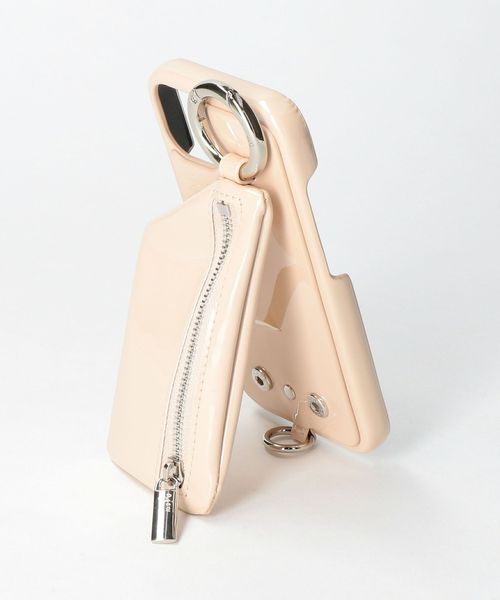 リング部分をフックなどにひっかけたり、ジップポケットに小物を収納できたり、携帯を立てる事も可能な多機能な仕様は健在。