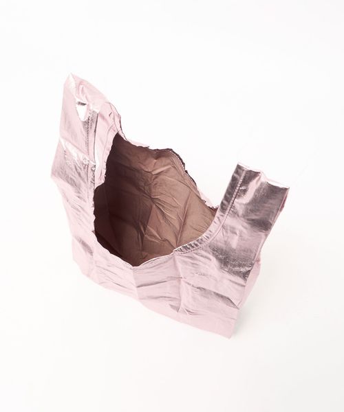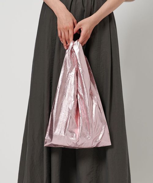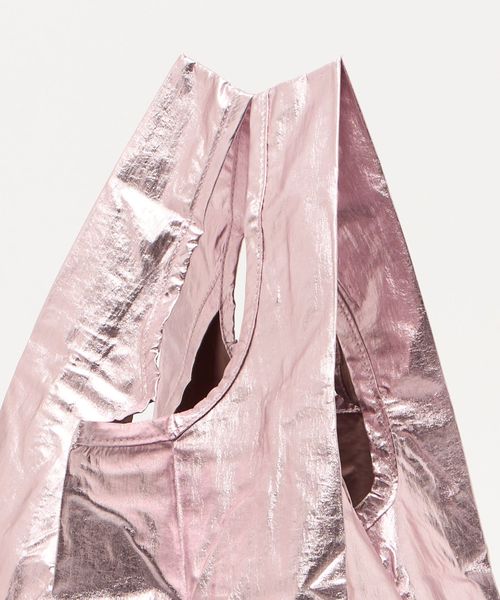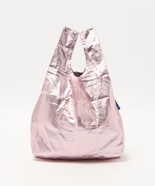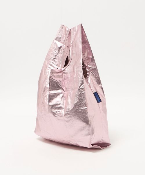 メタリックな光沢が視線を引き付ける<BAGGU>のショッピングバッグ。