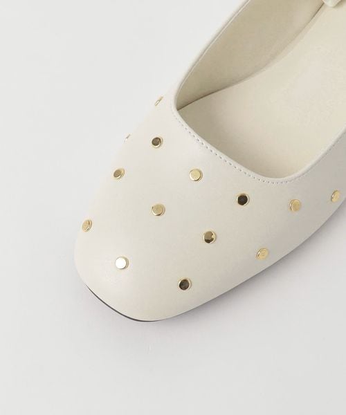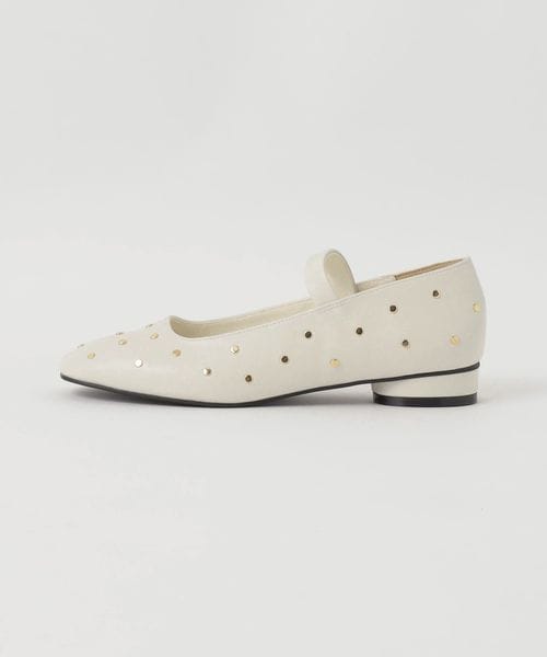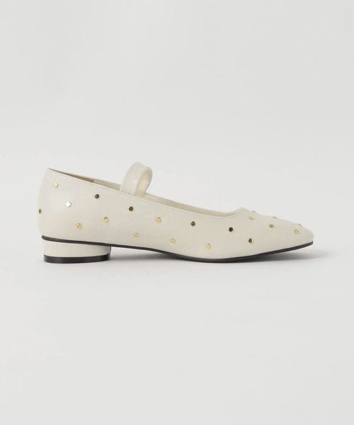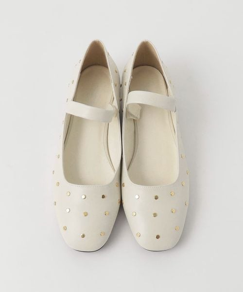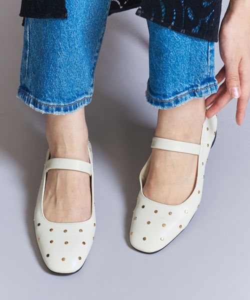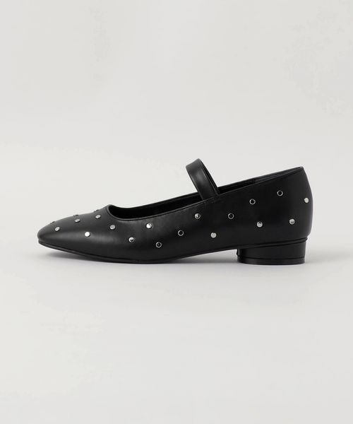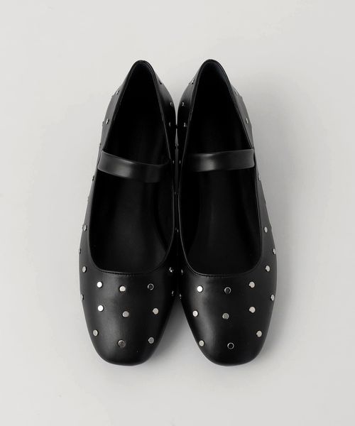 メリージェーン型のストラップ付きバレエに、アクセントのスタッズを施した今季のトレンド感満載の一足。