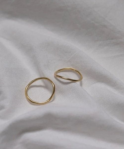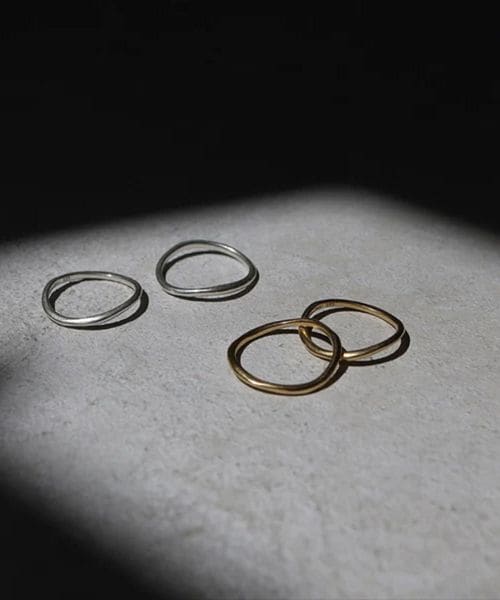 2本の重ね着けはもちろん、1本ずつ着用したりカスタマイズしやすいようにサイズ違いのペアになったリング。