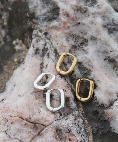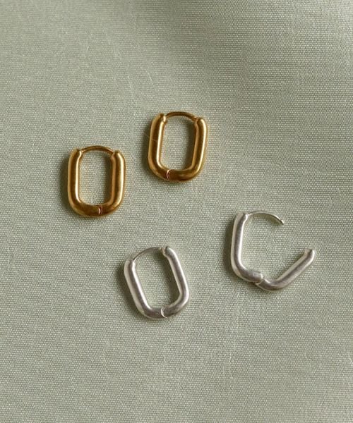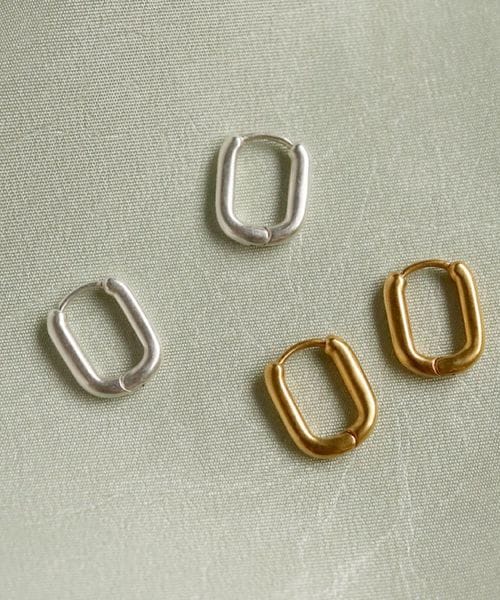 楕円のシルエットが顔周りにシャープな印象を与えてくれるピアス。