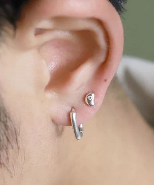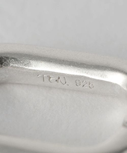 メタリックなシルバーの光沢が印象的な<TEN.>オブロングピアス