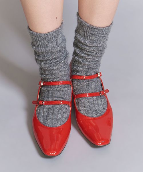 可愛らしくなりすぎないダブルストラップとスクエアトゥ型で、フェミニンムード漂う今シーズン注目の一足。