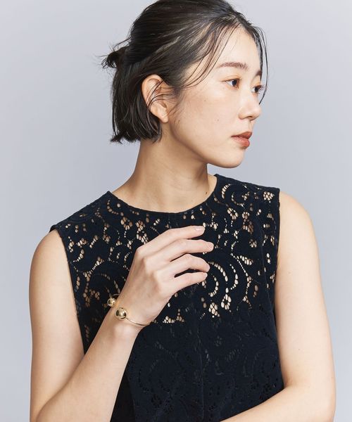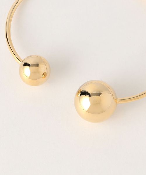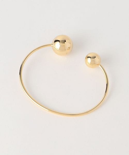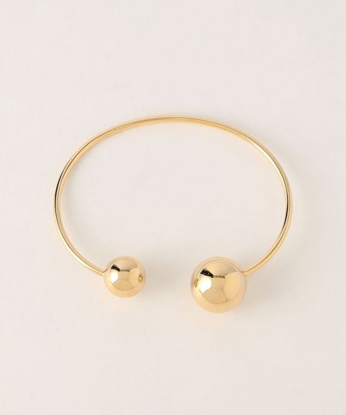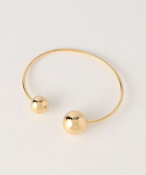 メタルボールが目を引く、肌なじみの良いミニマルなバングル。